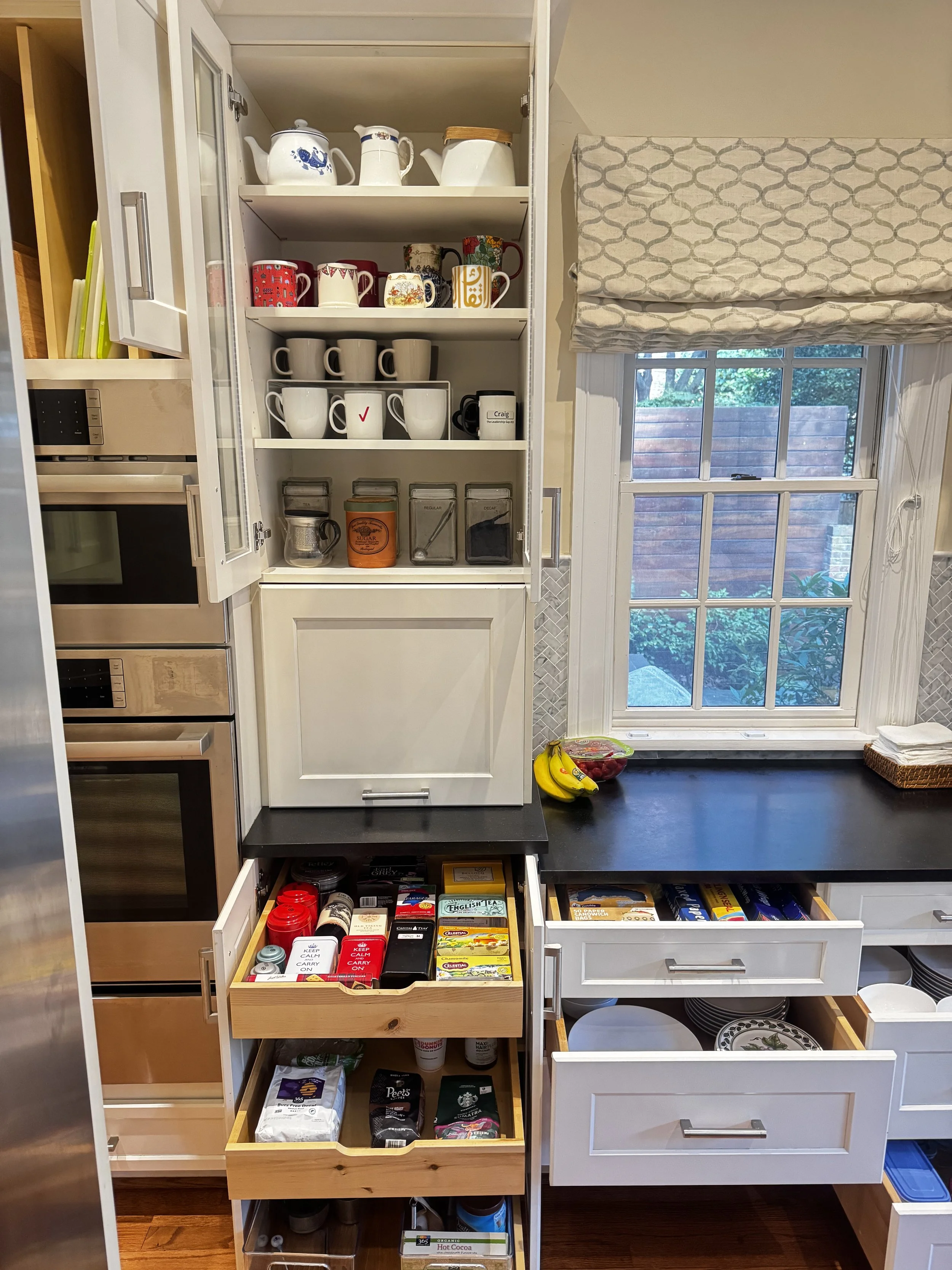 Whole kitchen beautifully organized, categorized, contained and labeled. This is the heart of the home and it’s important for us to create simple manageable solutions that make everyday routine easier.