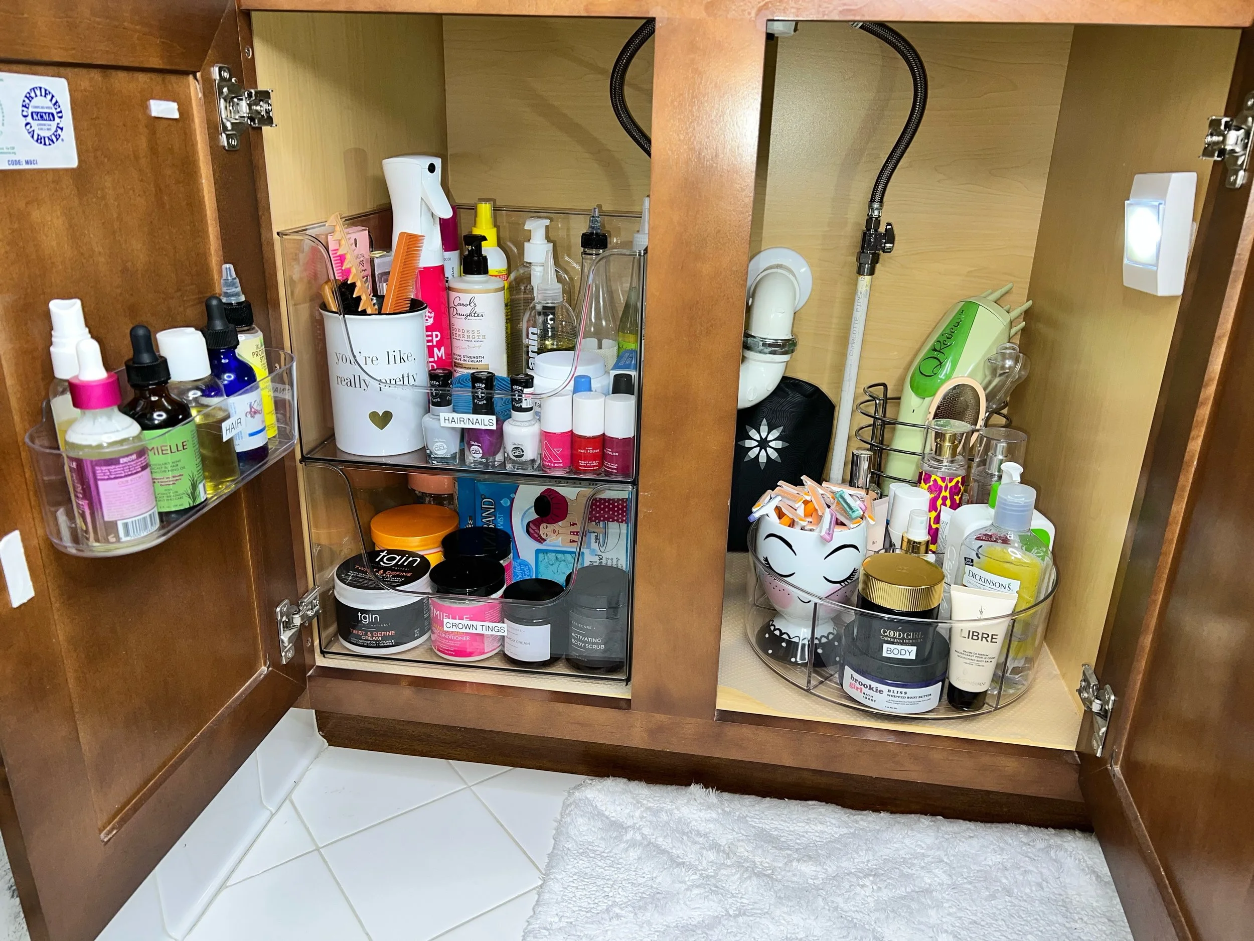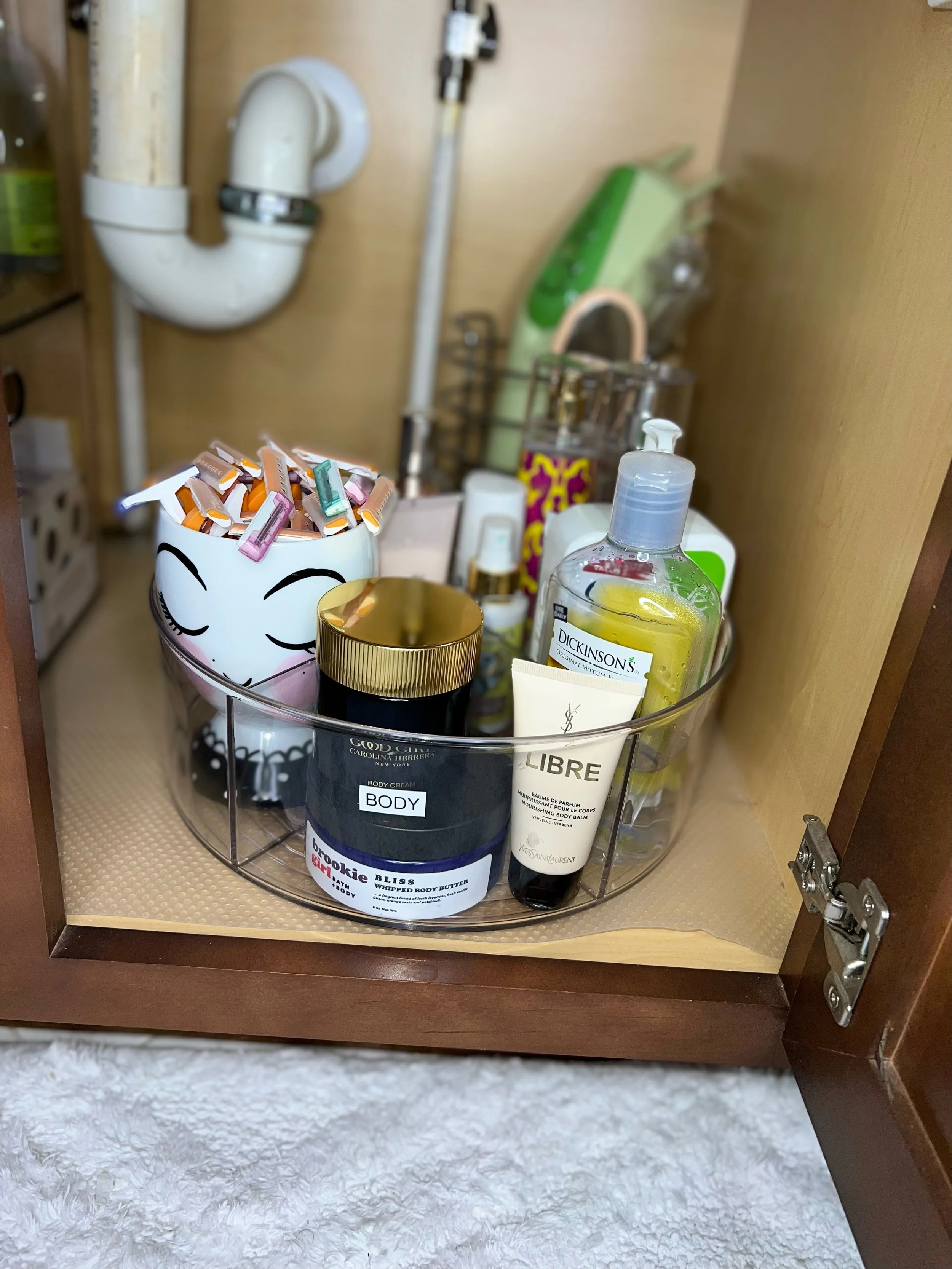 2. Make sure to declutter before you go out to buy organizing products. When you declutter in your bathroom make sure to toss out old and expired products such as make-up, lotions, creams, travel- size toiletries, meds if you store them under your sink. Get rid of stuff you no longer need or use, donate any unused items to organizations such as shelters where someone else could really use them. Create space and don’t just buy stuff simply because it’s on sale, “might need it someday”. Remember every time you buy something you don’t need, you’re wasting money and inviting clutter into your home.